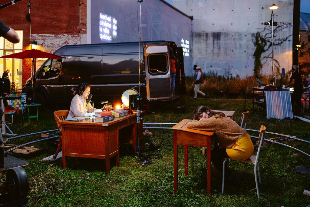 On September 12, 2025, 700 people participated in Quand je ne dit rien, je pense encore, an event inspired by Camille Readman Prud'homme's book, presented in collaboration with the FCVQ and Spira at Place Dis oui. Visitors wandered freely through the orchestra, arranged like a small village of musical islands. At each station, they discovered musicians and film artisans in full creation. The director, director of photography, lighting crew, sound effects technician, and actresses worked before the audience's eyes, transforming the filmmaking process into an accessible spectacle. The film, shot live, was screened simultaneously, accompanied by the author's poetic narration. Spectators were free to choose their experience: listen to the musicians, follow the filming, watch the film, or enjoy the festive atmosphere with friends. The evening featured around thirty artists and technicians. Immersive public and festive events like this are a format that we particularly like and that we can adapt to different contexts.